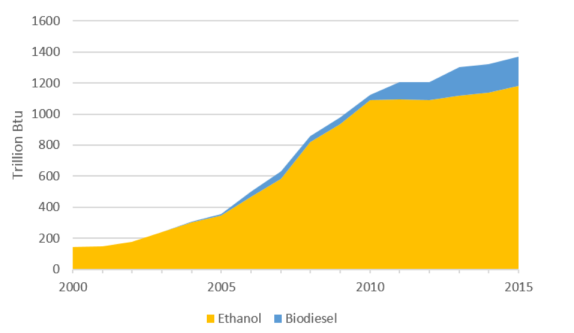 Biodiesel produced from distillers’ corn oil grew by about ten times from 2010 to 2013, but leveled off thereafter. Corn oil associated with distillers grains is limited by corn ethanol production, and while some further shifting of oil from feed to fuel markets is possible, the increase associated with the ethanol boom is unlikely to be repeated, and is not the basis for a sustainable trend into the future.